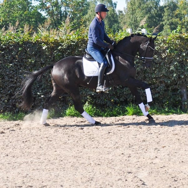 Sparky is a very well-behaved and mega-spectacular gelding! His sire, Secret, is known as a producer of very good character and tremendous movement! His first crop of offspring represented 25% of the participating 5-year-olds at the World Championships for Young Dressage Horses! And numerous licensed stallions! Mother Ethel (Elite, IBOP, PROK, Sport) competed at Small Tour level and is one of the finest horses we have ever had the pleasure to work with. She is also the dam of the licensed stallion Especial (Jochie VZH), who is competing at 5* Grand Prix level under Charlotte Fry, and he is the sire of Everest, the PAVO Cup winner. The licensed stallion Rise as Ledgens VZH is also a son of Ethel. Mother's dam was our foundation mare Wilona. This Elite, Preferent, Prestatie, IBOP, PROK and Sport mare has brought us a lot of good! Everything from this line has an enormous amount of go, commitment, level-headedness and handiness, which makes these exceptionally fine horses to work with!
