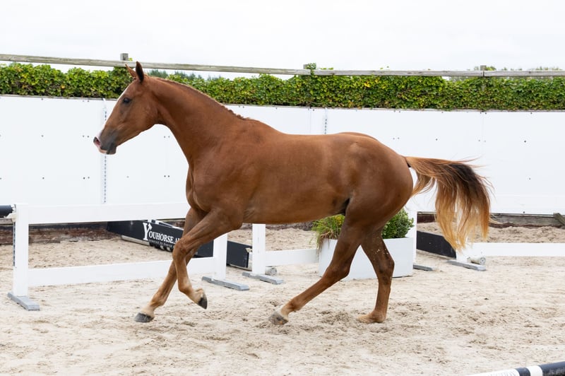 The three-year-old gelding Snelle is a beautiful horse with a calm temperament. He is cautious when jumping. His sire, Poker de Mariposa, made his 1.50m debut with Willem Greve on May 5th in Mannheim. As a son of Nabab de Reve out of the 1.60m Grand Prix mare Ilena de Mariposa (Berlin), he comes from a very interesting pedigree. His granddam is the top show jumping mare Flora de Mariposa (For Pleasure), who was highly successful for many years with Penelope Leprevost (FRA). His dam, Nesquick, descends from Tallmann TN (1.50m jumper) out of Flicka Nieuwmoed (Carambole).