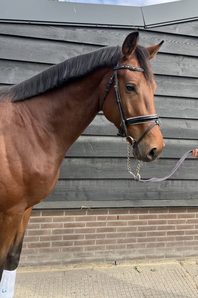 Sandro es un potro grande de 3 años de color marrón oscuro Kjento x Florencio x Flemmingh Caballo con un carácter agradable. Está familiarizado con la cuerda con silla y brida, listo para ser montado y entrenado. No está aprobado, tiene una pequeña deformidad en el salto (2/3).