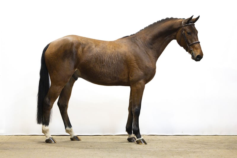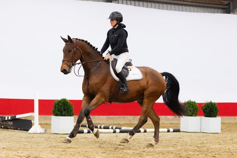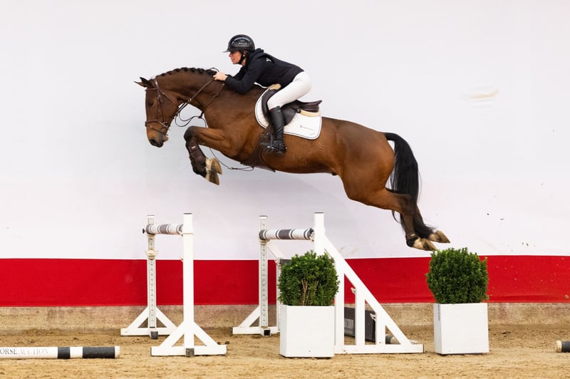 Wat een fantastisch mooi model heeft deze vierjarige Ruby BH. Hij springt goed van de grond, mooi met de schoft omhoog en heeft een goede achterhand techniek. Hij heeft nog weinig gesprongen onder het zadel, maar gezien zijn bouw zal hij later comfortabel te rijden zijn. Vader L’Extreme BH (1.35m springen) is een zoon van de 1.50m springmerrie Shou d’Ouilly en kleinzoon van de 1.55m GP-merrie Osiris d’Ouilly. Moeder Klasissa BH (Baloubet du Rouet) is gefokt uit de volle zus van de 1.70m Grand Prix-hengst Verdi TN, waarmee Maikel van der Vleuten jarenlang meedraaide in de wereldtop. Deze Orisssa M gaf zelf het CCI4* eventingpaard Denver en een 1.30m en 1.45m springpaard.
