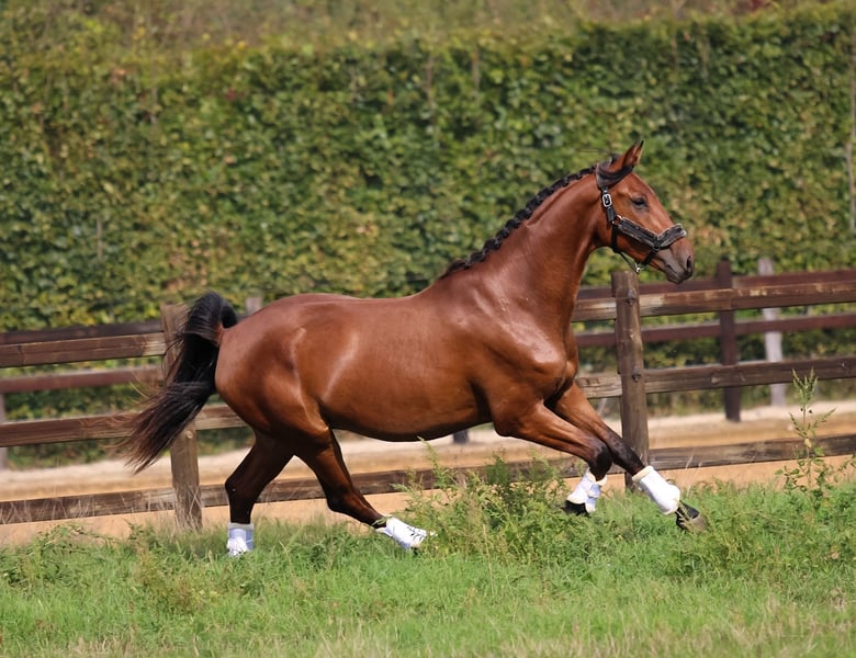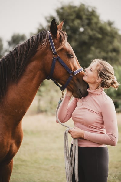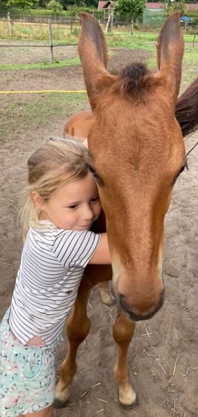 Due to a young horse coming up, he is available directly from the breeder. A very sweet, affectionate, and people-oriented gelding. Confident with a calm demeanor. Used to dogs and young children around him, he loves all the attention he can get. Well-behaved on the lead, at the grooming area. Stands nicely still for the farrier and when rinsing his feet. A pleasure to ride under the saddle—light in the hand, responsive to the leg, and without being overly quick. Are you simply looking for a very nice horse with a well-known background, raised at home, gradually and calmly trained step by step, and who will truly become your companion? Then definitely come and meet him. Before we started working with him, he underwent radiographic examination (legs). All inspections are allowed k.k.