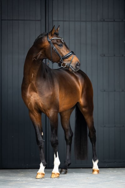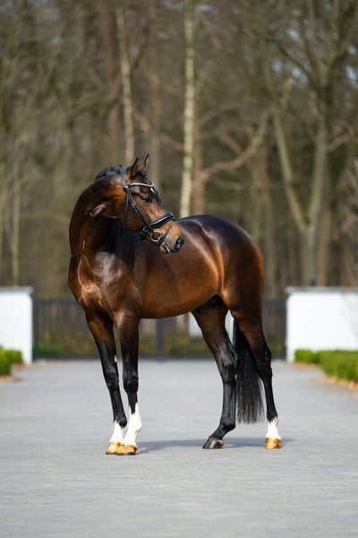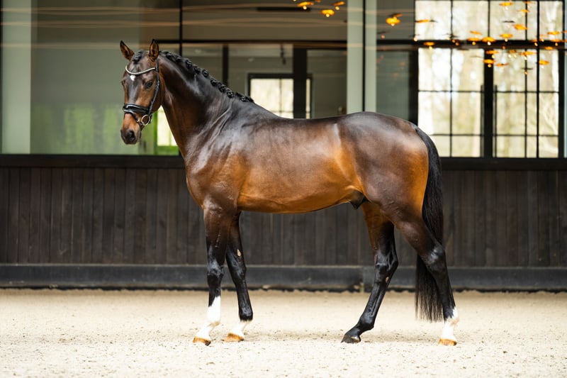 *Starlight* Gelding, 2022 KWPN In Style x United 168 cm 3-letni z niesamowitym charakterem! Zaczęty w pracy 1 miesiąc temu i zachowuje się wyjątkowo dobrze. Odpowiedni dla każdego rodzaju jeźdźca. Brak wad stajennych. Idealny przegląd weterynaryjny, świeże badania kliniczne i rentgenowskie z 2025 roku.