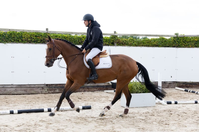 The four-year-old Rosalina v/d Laarse Heide is not only a beautiful mare, she also jumps with a lot of scope and carefulness. She comes from the line of the 1.60m Grand Prix mare Kwidanta van de Laarse Heide. Sire Chaqui Z (Chacco Blue) was very successful with Shane Sweetnam, performing well in 1.65m and 1.70m Grands Prix and Nations Cups. He is bred out of the half-sister of Zekina Z (1.60m GP) and four 1.50–1.55m GP horses and is closely related to the 1.60m Grand Prix stallions Lexicon and Navarone Z. Dam Nabarlina vd Laarse Heide Z (Nabab de Rêve) jumped at 1.40m level and is a full sister to Noberlina vd Laarse Heide (1.55m Grand Prix with Nikita Cheung). Granddam Chinderlina Laarse Heide (Chin Chin) and great-granddam Ardanta (Ramiro Z) competed at 1.30m level. Ardanta is also the dam of the 1.60m Grand Prix mare Kwidanta van de Laarse Heide (Mathijs van Asten; Dutch Champion 2005), the stallion Quintessence van de Laarse Heide (1.40m level) and three mares at 1.30–1.35m level. Olympic Andretti T (1.60m GP with Henk van den Broek) comes from the same line. http://youhorse.auction/en/auction/Rosalina-vd-Laarseheide-CHAQUI-Z-x-NABAB-DE-REVE