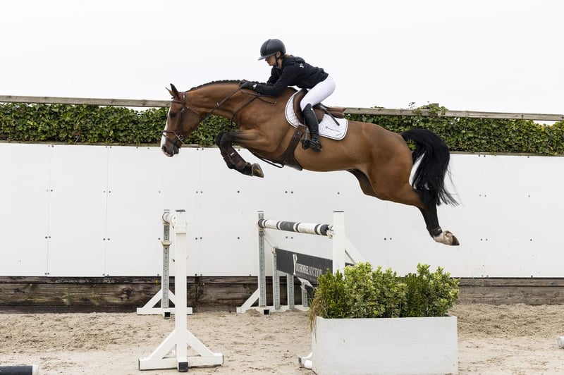 Horse with a lot of presence and a good attitude. Good character and shows reflexes and push-off. Careful at the jump and shows scope. Easy to ride. Sire Ipsthar – 1.60m level. International showjumper with performances at the highest level and offspring in sport. Dam Garde Vous van het Hellehof – no own sport results. Damline Granddam Ussie van het Kouterhof – 1.25m. From this line come: Kwik Tweet – 1.55m Itwisth – 1.55m Jardin – 1.50m Komme Vous – 1.60m Twitter Z – 1.35m Additionally multiple horses at 1.40m and 1.30m level. Approved stallion: Romantico van het Hellehof (AES).