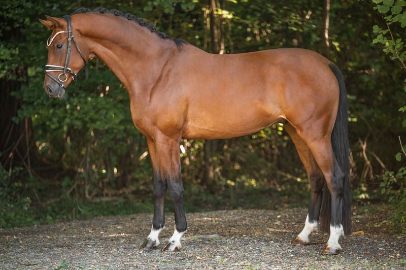Drodzy zainteresowani, Aby umówić się na jazdę próbną, proszę o kontakt poprzez WhatsApp. W ciągu dnia jestem dostępna na WhatsApp, a telefonicznie najlepiej skontaktować się ze mną między 16:00 a 19:00. Z niecierpliwością czekam na kontakt. www.angelina-devittorio.de ⭐️ Rhapsody ⭐️ Wiek: 4 lata (2021) Wysokość: około 173 cm (16,1 hh) Rodowód: Kjento x Monaco Poziom wyszkolenia: DrPf A, wysoko plasowany RTG: dostępne dobre zdjęcia rentgenowskie Na sprzedaż oferowany jest wysokorosły, czteroletni ogier od Kjento, który zachwyca bardzo dobrą jakością ruchu we wszystkich trzech podstawowych chodach. Ze względu na jego rozwój fizyczny, został on świadomie i odpowiednio wolno wytrenowany. Obecnie w pełni dojrzały, już podczas pierwszego startu w konkursie skoków w klasie A zajął drugie miejsce. Jego kłus charakteryzuje się znakomitą, wznoszącą się mechaniką, a w stępie prezentuje się elastycznie, lekko i energicznie, podczas gdy w chodych wyraźnie zaznacza rytm i przestrzenny zakres ruchu. Zawsze wykazuje współpracę, odwagę i jasny umysł. Pomimo swojej pełnej przydatności dla amatorów, jego obecny poziom wyszkolenia wymaga jeszcze od jeźdźca trochę doświadczenia z młodymi końmi. Jego brat Elegance odnosi wielkie sukcesy w Grand Prix pod Beatriz Ferrer Salat. Tu wyrasta koń o wyjątkowej jakości, który ma wszelkie predyspozycje do odniesienia sukcesów na dużej arenie.