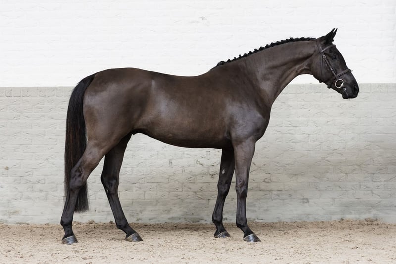 With his performances at international 1.55m-level under Jeroen De Winter and his striking offspring, the genetically interesting sire Pegase van ’t Ruytershof is living up to high expectations. His oldest offspring are at the start of their international careers at seven years of age, and he also presents a well-jumping offspring here. Dam Waterval has already produced two 1.30/1.35m-level showjumpers, and granddam Pam-Pam herself competed at 1.30m-level. In the second generation, the Grand Prix stallion Larino, with whom Peter Geerink was successful, adds his performance genes and has proven his breeding value with offspring such as Redefin, Silver Spring, With Wings and Jasmien vd Bisschop.