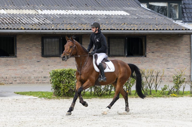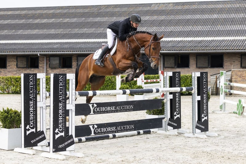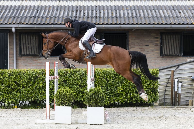 Jumps with a good technique and stands out with his big canter and scope. This 5-year-old has competed in the young horse classes and has experience at 1.10m–1.15m level. Still somewhat green in the rideability, but clearly shows quality and potential for higher levels. Sire Eldorado van de Zeshoek TN competed at 1.60m level and is among the absolute top sires of the moment. He passes on scope, attitude and size and has already produced multiple horses at 1.60m–1.70m level. Dam The dam Solitaire herself competed at 1.30m level and is a mare with proven sport ability. Damline The damline has produced multiple sport horses at level. Ferdinand competed at 1.50m level and performed internationally. Wimbledon and Mister V competed at 1.30m level. Further in the line we see, among others, Londontimes (1.60m, approved stallion) and several horses at 1.35m–1.50m level such as Elba-Montanja (1.50m). The line clearly shows a consistent production of sport horses with multiple performances at 1.30m and higher.