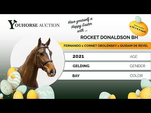 Rocket Donaldson is een jeugdig paard met veel afdruk, vermogen en een goede achterhandtechniek. Hij springt met een mooie manier, is voorzichtig en maakt de sprong met veel gemak. Hij heeft een fijne galop, is lichtvoetig en laat zien dat hij makkelijk vermogen heeft. Een paard dat goed meewerkt met de ruiter en vertrouwen geeft. Hij heeft oefenparcoursen gelopen en is nog wat groen, maar toont veel kwaliteit en aanleg. Klaar voor de 1.10m parcoursen en een paard dat zich makkelijk laat ontwikkelen richting een hoger niveau. Vader Fernando sprong op 1.60m Grand Prix niveau met ruiters als Harrie Smolders en Marcus Ehning en behoort tot de bewezen hengsten op het hoogste niveau. Hij geeft vermogen, instelling en kwaliteit door. Moeder Mae Donaldson BH is een dochter van Cornet Obolensky (1.60m) en komt uit een zeer sterke prestatiestam. Grootmoeder Zizi Donaldson sprong op 1.55m niveau en is afkomstig uit een stam met meerdere internationale springpaarden: Quite Donaldson (1.60m) Coriana (1.60m) Quebec (1.60m, goedgekeurde hengst) Quebecca Z (1.60m) Qatar Donaldson Z (1.50m) Clint Donaldson Z (1.45m) Sanudos M (1.45m) meerdere paarden op 1.30m niveau Een bewezen stam met vermogen en prestaties op het hoogste niveau.