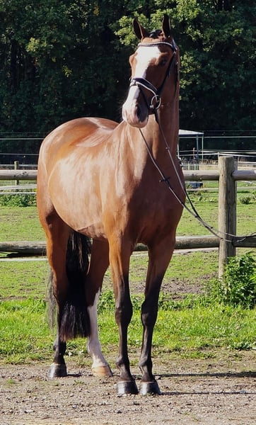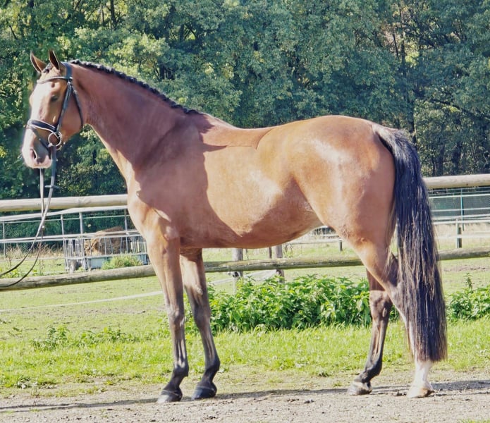 Oto nasz 4-letni brązowy wałach, wyhodowany z linii krwi Hermantico x Cantos x Pacific. To młode koni jest dobrze oswojone i komfortowe w jeździe. Ma doświadczenie w skakaniu małych parkurów i wykazuje dobre potencjał do dalszego treningu i rozwoju w jeździectwie skokowym. Przeszedł badania rentgenowskie. Ten wałach ma super przyjazny charakter, co sprawia, że jest łatwy w obsłudze, zarówno na uwięzi, jak i pod siodłem. Nadaje się dla jeźdźca, który szuka przyjaznego, łatwego do wytrenowania konia z obiecującymi zdolnościami. Niezależnie od tego, czy zaczynasz z młodym koniem, czy szukasz niezawodnego partnera do skoków, ten koń jest doskonałym wyborem. Jeśli chcesz mieć przyjaznego, łatwego do zarządzania konia z dobrymi podstawami w skokach i doskonałym zdrowiem, ten wałach czeka, aby Cię poznać! Możliwość jazdy próbnej po umówieniu się – opłata 30 € zostanie odliczona przy zakupie. W przypadku poważnego zainteresowania prosimy o kontakt pod numerem +31615117573.