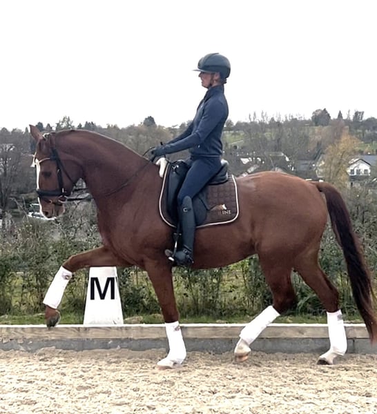 Red Rufus is a tall, well-built gelding that has already achieved wins and high placings in Dressage Horse A. He is on the way to competing at class L and impresses primarily with his completely fearless temperament and exceptional basic gaits. He is not spooky at all during competitions. He enjoys hacking out and is accustomed to daily turnout. X-rays of his back and neck are available and show no findings.