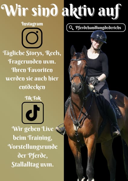 Im Kundenauftrag: Pelle ist ein 2020 geboren ca. 170 cm v. Gaillard de la Pomme, Nabab De Reve, Darco x Hors la loi II, Concorde *Pelle* ist ein wunderschöner Allrounder, er eignet sich auch für Angstreiter. Er geht schön in der Dressur, ist gut ausgebildet und zeigt einen tollen Sprung. Er ist super gelassen und sehr cool. Angstreiter, schwache Reiter und auch Kindern können auf ihm reiten. Er bringt zudem genügend Qualität für den Sport mit. Im Gelände alleine und in der Gruppe super zu reiten. Pelle ist auch in fremden Umgebungen gelassen. Ei n Traumpferd durch und durch. Im Umgang verschmust, liebevoll und gut erzogen. Eine große AKU bringt er auch mit. Ein aktuelles Video finden Sie hier in der Anzeige oder unter folgendem Link: https://youtu.be/kXg7A6iz8o8 Pferdehandlung Dederichs – Ihr Partner für den Pferdekauf Kontakt & Erreichbarkeit: Anfragen bitte ausschließlich telefonisch unter 0173/9792139 Montag – Freitag: 09:00 – 18:00 Uhr Samstag: 09:00 – 15:00 Uhr Sonntag: Ruhetag Folgen Sie uns auf Social Media! Erleben Sie unseren Alltag mit den Verkaufspferden auf Instagram, TikTok & Facebook unter Pferdehandlung Dederichs Rabatt: Bei sofortiger Mitnahme Ihres neuen Traumpferdes erhalten Sie zwischen 5 %– 10 % Rabatt Probereiten & Vorführen: • Probereiten: 30 € pro Pferd (max. 2 Reiter), Betrag wird beim Kauf angerechnet • Feiertage: Proberitt 50 € • Vorführung durch unsere Bereiter: 25 € pro Pferd (Vorreiten, Bodenarbeit etc.) Ankaufsuntersuchung & Transport: • Viele unserer Pferde besitzen bereits eine AKU • Sie können selbstverständlich Ihren eigenen Tierarzt mitbringen • Gerne organisieren wir eine Untersuchung • Wir unterstützen Sie auch gerne beim Transport ins neue Zuhause Weitere Verkaufspferde: In unserem Stall stehen weitere Verkaufspferde, die noch nicht online sind. Falls Ihr Traumpferd noch nicht dabei ist, zögern Sie nicht, uns zu kontaktieren. Wichtige Hinweise: • Stockmaß-Angaben sind geschätzt und nicht exakt nachgemessen • Alle Beschreibungen sind subjektive Einschätzungen des Verkäufers und keine zugesicherten Eigenschaften Weitere Informationen finden Sie unter: www.Pferdehandlung-Dederichs.de