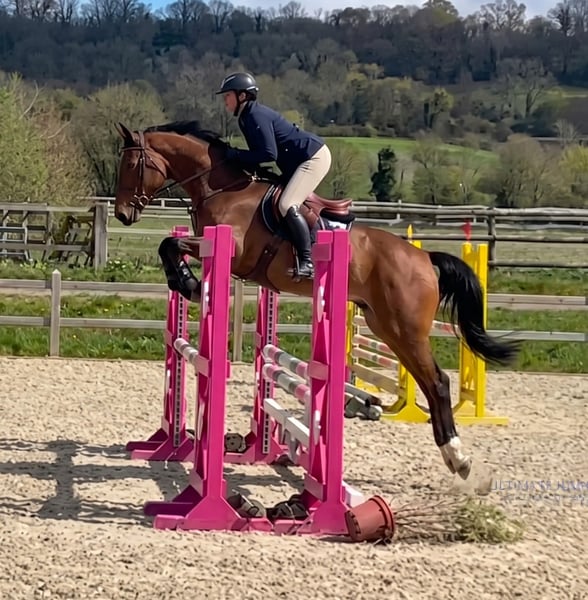 Mula de 6 años con experiencia en concursos, tranquila y valiente.