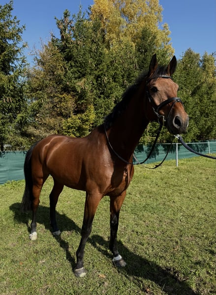 Zum Verkauf steht ein 6-jähriger, bildschöner Wallach, der sowohl mit seinen sehr guten Grundgangarten als auch mit seinem Vermögen am Sprung überzeugt. Dieser talentierte Wallach zeigt sich im täglichen Training stets motiviert, lernwillig und rittig. Er verfügt über ein angenehmes Temperament und ist dabei schön zu reiten, mit einer feinen Anlehnung und viel Ausstrahlung. Da der Reiter leider nicht ausreichend Zeit für seine Förderung hatte, wurde der Wallach bislang noch nicht regelmäßig im Sport vorgestellt. Er bringt jedoch alles mit, um mit entsprechender Ausbildung schnell Anschluss zu finden. Ein ideales Pferd für Reiter, die ein talentiertes Nachwuchspferd für Springen oder Vielseitigkeit suchen – mit genügend Qualität auch für höhere Klassen.