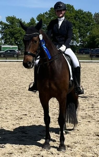 For sale is my gelding – perfect for dressage or eventing! He is a stunning dark bay gelding, born in 2019. Standing at 16.1 hh, he has the ideal size for ambitious riders who value quality and character. This talented dressage partner impresses with his elegant appearance and pleasant temperament. He already demonstrates a good degree of collection, showing potential for the high demands of dressage competition. The gelding is healthy, very affectionate towards people, eager to please, and enjoys his work. He is friendly in handling and would suit both experienced riders and ambitious young talents. He has been in my possession since he was a foal. If you are interested or need more information, please feel free to contact me. Viewing and trial riding can be arranged by appointment. I look forward to hearing from you!