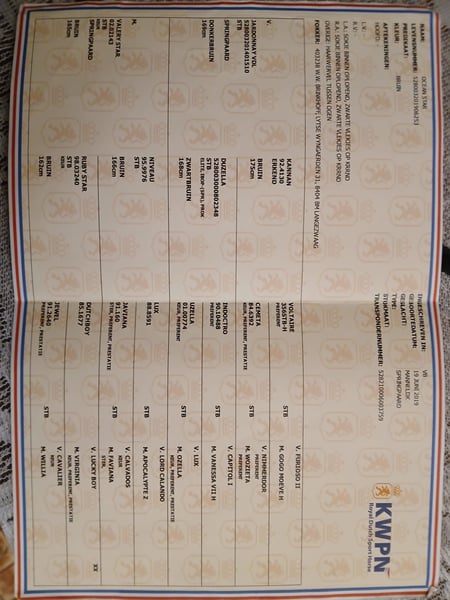 Informations 6-year-old gelding, 16.1 hh Successfully jumps up to 4 feet (1.20 m) and is an excellent choice for beginners, amateurs, and professional riders! He has completely clean X-ray results. Price: €15,000 + transport. The gelding is in perfect condition; a current veterinary check can also be arranged! He has been ridden in the field and is clearly suitable for eventing/military riding. He is fearless and absolutely reliable and faultless! Possesses a high-quality, top pedigree certificate. His mother jumps 4 feet (1.20 m). His full siblings on the maternal side compete up to 4 feet 9 inches (1.45 m) in sport! Pedigree: Jardonnay – Kannan x Niveau – Lux x Dutchboy +49 176 4017 78 94