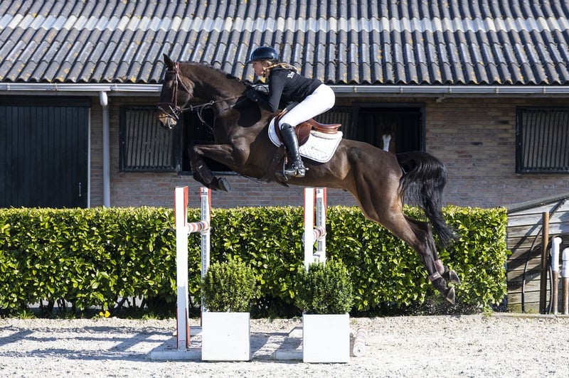 Modern sport horse with excellent scope and a positive attitude. Clears jumps with an easy technique and is careful at the fences. Has a soft mouth and is pleasant to ride when relaxed. Can be a bit looky and tend to tense up quickly, especially in new situations or at height, but adapts well afterwards. Due to his temperament and willingness, suitable for an amateur rider, but he requires a rider who provides calmness and confidence. His key strengths are his scope and carefulness. Sire El Barone 111 Z competed at 1.60 m level and is a modern top sire. Through Emerald van ’t Ruytershof (1.60 m) and Diamant de Semilly (1.60 m), he passes on scope, technique, and attitude. He has already produced multiple offspring competing at 1.50 m to 1.60 m levels and is making strong progress in international sport. Dam The dam, Britt-Borough, is a mare from a proven sport line and has produced several successful offspring. Damline From this damline come multiple sport horses competing at various levels. Kaborough competed at 1.45 m and stands out clearly. Jannaborough competes at 1.30 m. Further in the second line are notable horses such as Axel Baio (1.45 m) and Zorm (1.45 m). Cornoba Cocles Z and Balourough Z also compete at 1.40 m. This line demonstrates a broad and consistent production of sport horses, with performances ranging from 1.30 m up to 1.45 m, with some exceptional individuals reaching higher levels.