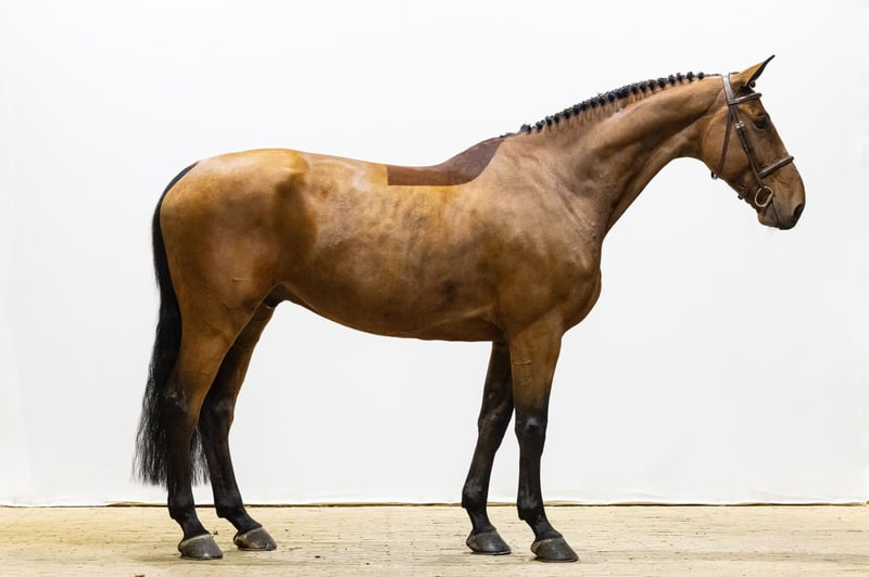Bonus VW będzie miał osiem lat w 2026 roku i obecnie startuje na poziomie 1,25 m. To koń, który jest przyjemny w jeździe, ale wyraźnie ma dużo energii, szczególnie w galopie. Chce być ostrożny podczas skoków, wykazuje odpowiedni zakres skokowy i ma dobrą mentalność. Ze względu na swój szybki sposób poruszania się, nie jest odpowiedni dla początkujących jeźdźców, ale świetnie sprawdzi się u doświadczonego amatora lub profesjonalnego jeźdźca poszukującego niezawodnego i przyjemnego konia do startów na zawodach. Bonus VW daje jeźdźcowi pozytywne odczucia, jest współpracujący i wykazuje szczere chęci do pracy. Ojciec Bubalu VDL (Baloubet du Rouet x Nimmerdor) startował na poziomie 1,60 m w Grand Prix i jest uznawany za wybitnego reproduktora. Wyprodukował kilka międzynarodowych koni na poziomie 1,60 m, w tym Hulahupe JR, Honeypenny W i Impian D. Dzięki Baloubet du Rouet i Nimmerdor, ta linia ojcowska ma głębokie korzenie w światowym sporcie międzynarodowym. Matka Alonza (Winningmood x Concorde) sama startowała na poziomie 1,45 m i łączy osiągnięcia sportowe z wysoką jakością hodowlaną. Jest córką Winningmooda, konia na poziomie 1,60 m w Grand Prix i ambasadora BWP, wywodzącego się z wpływowej linii Darco. Druga matka Santa Vile (Concorde) również brała udział w sporcie i okazała się silną matką chowaną. Z jej linii pochodzą koni takie jak Watch Me Ville (1,45 m), Ciabeau (1,50 m), Zero Limits (1,35 m) oraz Harrie’s Girl (1,40 m). Sama Alonza osiągała wyniki na arenie międzynarodowej, co potwierdza spójność tej rodziny. Trzecia matka Hillkenvile (Renville) stanowi fundament wyjątkowo szerokiej linii sportowej. Ta gałąź wyprodukowała liczne międzynarodowe skoczki, w tym Concordville (1,60 m), Why Me (1,40 m), Olstein-Vile (1,35 m), Zafira (1,30 m), Evangeline (1,30 m), Fleur 438 (1,35 m), Uville (1,30 m), Aville (1,35 m), Barichello (1,30 m), Eville (1,45 m) oraz Griffith (1,40 m). To linia matczynna znana z głębokości, wytrzymałości i sportowej jakości. Czwarta matka Killkeney stanowi fundament tej silnej rodziny sportowej. Z tej linii pochodzą konie takie jak Teacher (1,50 m), Another One (1,30 m), Splendor (1,60 m), Armani (1,40 m), Cocu SB Z (1,40 m), Dilkene’s Dream B (1,30 m), Loncorde (1,40 m) oraz Adoctro (1,50 m, międzynarodowy). To rodowód, w którym osiągnięcia są przekazywane z pokolenia na pokolenie. Bonus VW łączy w sobie dużą energię, ostrożność i łatwość jazdy z bardzo silną linią matczyną pełną koni sportowych i sprawdzonych ojców. To koń wysokiej jakości dla jeźdźców, którzy chcą się dalej rozwijać w sporcie.