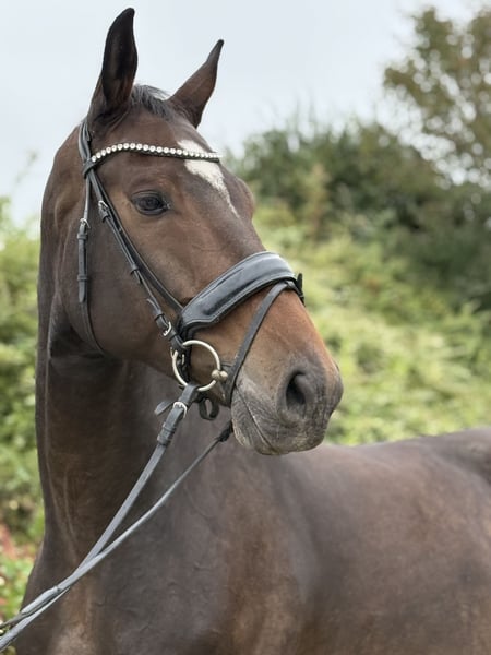 For sale is a KWPN gelding with a solid foundation – a perfect companion! This beautiful dark bay KWPN gelding, born in 2018, combines elegance and presence with a height of 16.1 hands. He has a strong build but is very sensitive under saddle. A clever horse that simply needs more time and can get bored fairly quickly. An up-to-date veterinary certificate without findings is available. Ideal for ambitious riders seeking a great partner. He is currently kept in a paddock box with daily turnout, and this should remain the case in the future. This is not a desperate sale; the decision depends on the right fit. He is not being sold to a dealer. Please feel free to contact me for more information or if you are interested!