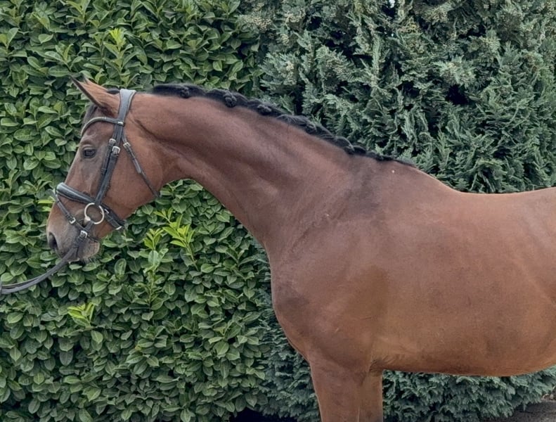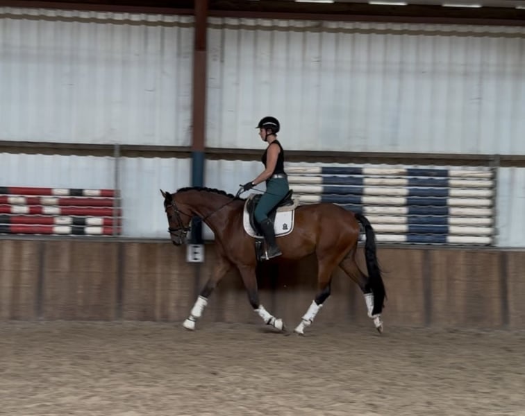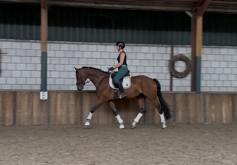 Due to no suitable match with the current owner, this lovely and sweet gelding is being re-listed: A charming and gentle gelding. He stands approximately 1.70 m and was bred KWPN for dressage. Pleasant to ride in dressage, responds well to aids. He is at L-level but has not yet been officially competed. Recently, he also performed a small jump under saddle. He handled it well, has limited experience with jumping but was very well-behaved! He can also go on outdoor rides with others. Always gentle when mounting. Stands quietly. Under saddle, he is not spooky or sensitive. The horse can sometimes whinny (yes, you read that correctly!), which the current owner finds a bit unpleasant. Additionally, he is social with both humans and other horses. When in contact with other horses, he can be vocal and may act a bit proud! (which is normal and natural). According to the owner, he sometimes drops his koker (a kind of lip curl), which we have never seen before! There are videos available of the horse. Clinical examination and X-rays of the hocks show no abnormalities! Old Gastel, NL ☎️ 0031-610197456