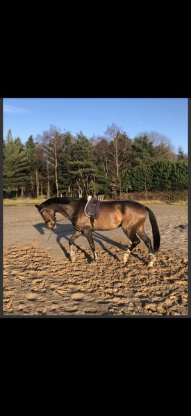 Mo is a willing 8-year-old gelding with bloodlines from High Five X Charmeur. His height at the withers is 1.78 meters. He is a friendly mover who, with the right rider, can truly reach his full potential. Mo is being sold because he is unfortunately too much horse for his current rider. He is well known to the farrier and is always kept in good condition by the veterinarian. Mo has a diagnosed splint bone, but he experiences little discomfort from it in his daily handling. He was recently fully health-checked. We are looking for a suitable home for Mo that can provide him with the calm, space, and clarity he deserves. His last health check was in 2021, including radiographs.