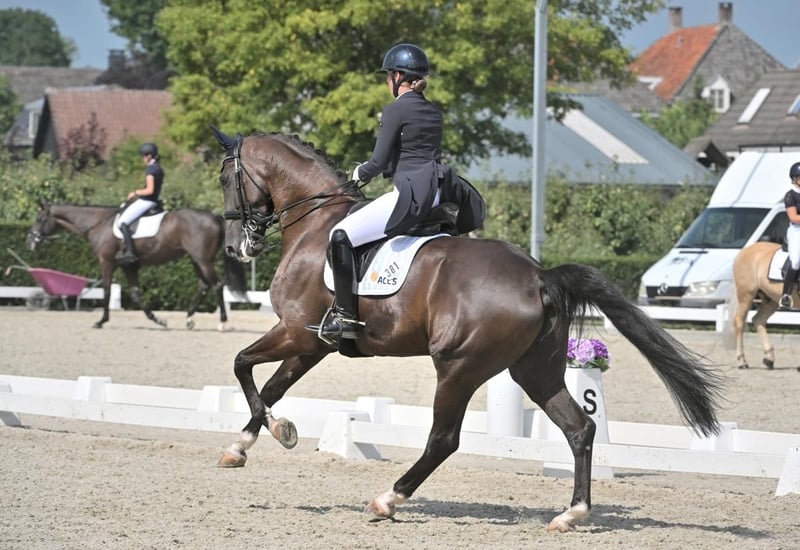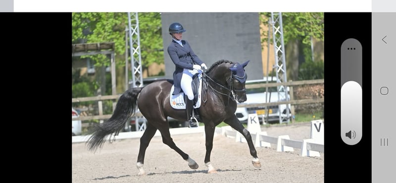 Top braaf dressuurpaard ook op vreemd terrein en bos zowel alleen als in de groep. Startgerechtigd Int.1