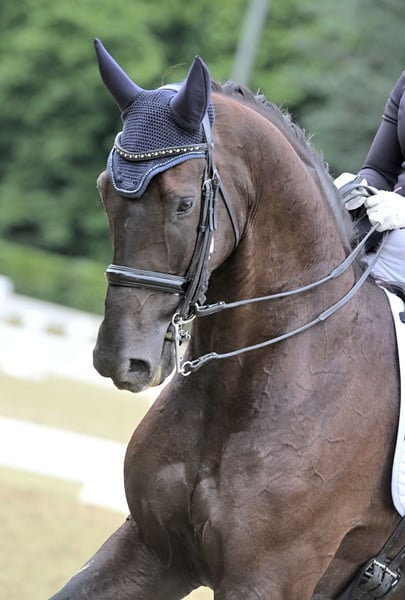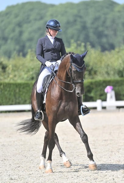 Sehr braves Dressurpferd, auch auf ungewohntem Gelände und im Wald sowohl alleine als auch in der Gruppe. Startberechtigt in der Klasse International I.