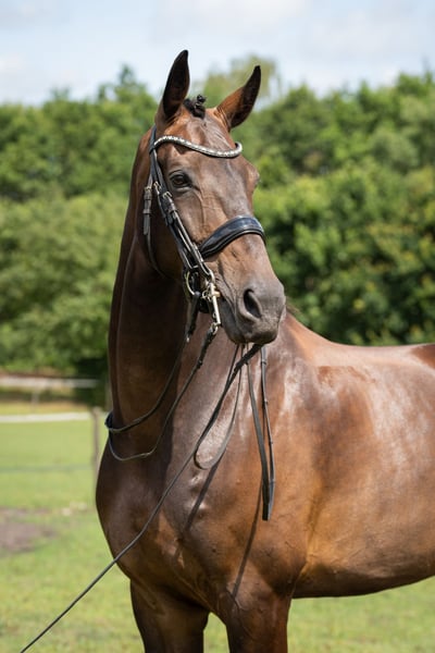 Due to emigration, this horse is offered for sale. Lyon is a sweet and elegant 9-year-old gelding by Apache x Dayano. Over the past 2.5 years, he has been in training with a Grand Prix rider, ensuring all exercises are very correctly executed. He is classified at Z2+1 level. Flying changes are confirmed. He can perform a green pirouette and a series. Preference is given to a confident rider who treats him gently and takes the time for a relaxed warm-up. He is an eager and honest horse. His vaccinations, deworming, farrier visits, dental care, and physiotherapy treatments are all meticulously recorded. The horse was clinically inspected and approved until October 2025. He has a slight ossification of the right front hoof cartilage, which does not cause any hindrance. Lyon is familiar with the wash station, stands well in his stall, easily coexists with other horses in the pasture, and is well-behaved on unfamiliar terrain and during outdoor rides. He is free of stable vices. He prefers to be loose in the trailer for a smooth journey. Other inspections are possible at the buyer's expense. Price includes bridle, blankets, and saddle pads. More info: +31 6 11860760