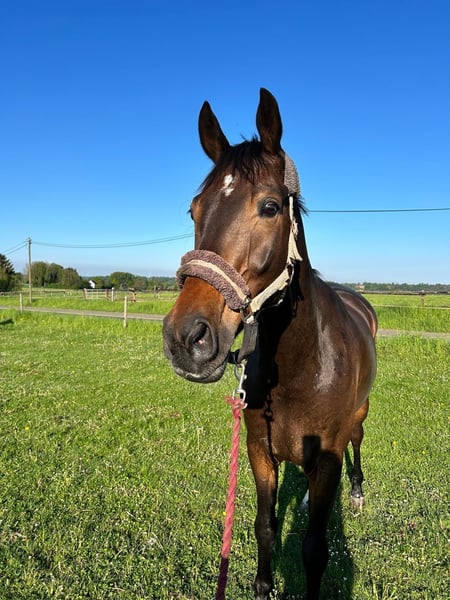 Dressage horse / Vaulting horse 9-year-old gelding, 1.73m with very good basic gaits. Goes bravely out on trails (even past cows!), excellent with groundwork (can be wrapped in a tarp) and loves to cuddle!!! Good for the farrier and loading, very well-mannered. Knows all-day turnout with geldings, but has also been in the pasture with a mare. Owner can no longer ride due to an accident! Location 51491 14.5 🥕