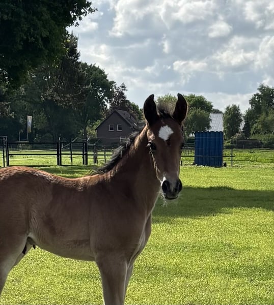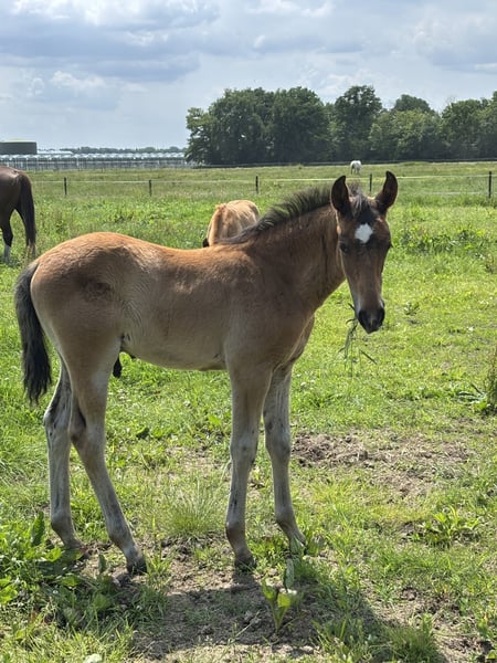 Super knap hengstveulen ⚜️ Valegro de Elegante CH ⚜️ * 27-04-2025, van dekhengst Elegante de Millan III x Voltaire x Hero x Wolfgang zoekt zijn forever home 🥰 Hij zou uitermate geschikt zijn voor Eventing of Working equitation. Nooit bang, alles is leuk en hij doet altijd met alles mee. Valegro komt elke dag in de hand, krijgt het veulen abc mee en is een makkelijk en heel mensgericht veulen. Echt een allemansvriendje Verwachte stokmaat: +/- 1.70m Staat correct op de benen, wordt ontwormd volgens schema dierenarts en gaat mee in de hoefsmid rondes Mag eventueel hier in de opfok blijven Vragen? Stuur gerust een pb! Valegro is te bezichtigen in Maasbree, Limburg