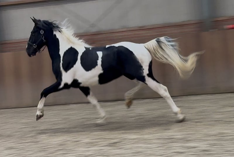 Auffallend schöner 3,5-jähriger schwarz-weißer Hengst. Er ist super schön platt gezeichnet. Er ist ein echter Showstar. Mit viel Präsenz und einer super Beintechnik läuft er durch die Bahn. Verfügt über ein vollständiges KWPN-Papier. Bei Interesse bitte anrufen oder eine Nachricht senden: +31643197337