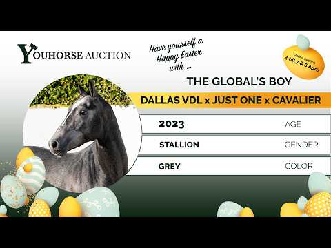 The Global’s Boy is een paard met een hele mooie uitstraling en een aansprekend model. Een fraaie schimmel die mooi naar boven gebouwd is. Hij beweegt zeer lichtvoetig, beschikt over makkelijk vermogen en toont zich voorzichtig op de sprong. Een imponerend paard dat alles met veel kwaliteit en gemak doet. Hij beschikt over een grote, opwaartse galop en zit makkelijk op het achterbeen. Hij kan goed schakelen in zijn lichaam en laat veel souplesse en balans zien. Een zeer interessant sportpaard met veel toekomst. Vader Dallas VDL sprong op 1.60m Grand Prix niveau en komt uit de sterke combinatie Douglas x Heartbreaker. Hij bracht meerdere internationale 1.60m paarden zoals Inpulss, Irving VG en Garadice Shore. Een hengst die vermogen, instelling en kwaliteit vererft. Moeder O-Global’s is een dochter van Just One en komt uit een veelzijdige sportstam met zowel spring- als dressuurgenen. De moederlijn brengt meerdere sportpaarden en goedgekeurde hengsten: Audi’s Amaja – 1.35m Edam – goedgekeurde hengst, 1.35m Fernando J – 1.35m Casan J – 1.30m Luta – 1.30m Daarnaast zien we in de lijn meerdere goedgekeurde hengsten en sportpaarden in zowel springen als dressuur. Een veelzijdige en bewezen moederlijn met sportgenen en instelling.