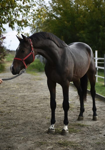 Dreamy KWPN Stallion for Sale! We are offering an impressive dark bay KWPN stallion for sale. Born in 2023, he has already reached a height of 16.8 hh and shows great potential to become an outstanding sport horse. This stallion is characterized by his excellent jumping ability and remarkable movement quality. He is well-suited for show jumping and already demonstrates promising progress in his training. His friendly temperament and eagerness to learn make him an ideal partner for ambitious riders. He is well-socialized and has gained initial experience in handling with people. If you are looking for a talented and promising show jumper, this stallion is the perfect choice for you! For more information or to arrange a viewing, please do not hesitate to contact us. We look forward to your inquiry!