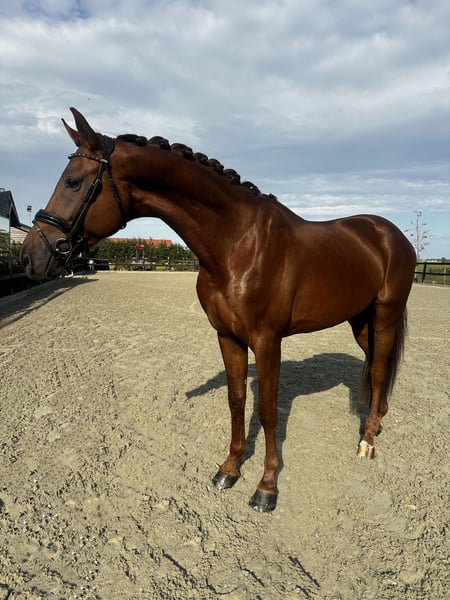 Łatwy w prowadzeniu koń, bardzo lekki w obsłudze. Posiada trzy ponadprzeciętne chody, z których chód jest bardzo przestronny, stęp wydaje się być wyraźnie wyregulowany, a galop jest mocno uniesiony i dynamiczny. Jego rodowód to Livius x Daily Diamond. Ma około 172 cm wzrostu. Zapewnia bardzo bezpieczne i pewne uczucie, mimo młodego wieku. Dlatego może być również odpowiedni dla mniej doświadczonego jeźdźca lub jako koń przejściowy z kucyka na dużego konia. Badanie rentgenowskie jest w porządku i potwierdzone. Po więcej informacji lub wideo proszę dzwonić lub pisać przez WhatsApp pod numer 0611749613.