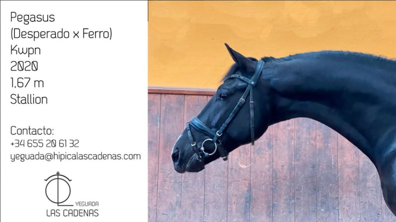 KWPN Horse for sale! Meet Pegasus! A stallion with great potential and excellent movements. Breed: KWPN Origins: Desperado x Ferro Year of birth: 2020 Height: 1,67 m Condition: Whole Price Range: 15.000-25.000 Euros Pegasus is a horse with an excellent conformation and temperament, ideal if your intention is to compete and evolve with a young horse. His bloodline guarantees great performance in dressage. If you are looking for a horse with a promising future, this is your horse! KWPN Horse Sale! Meet Pegasus! A stallion with great potential and excellent movements. Breed: KWPN Origins: desperado x Ferro Year of birth: 2020 Height: 1.67m Status: stallion Price Range: 15,000-25,000 €. Pegasus is a horse with excellent conformation and temperament, ideal if your intention is to compete and evolve with a young horse. His bloodline guarantees great performance in dressage. If you are looking for a horse with a promising future, this is your horse!