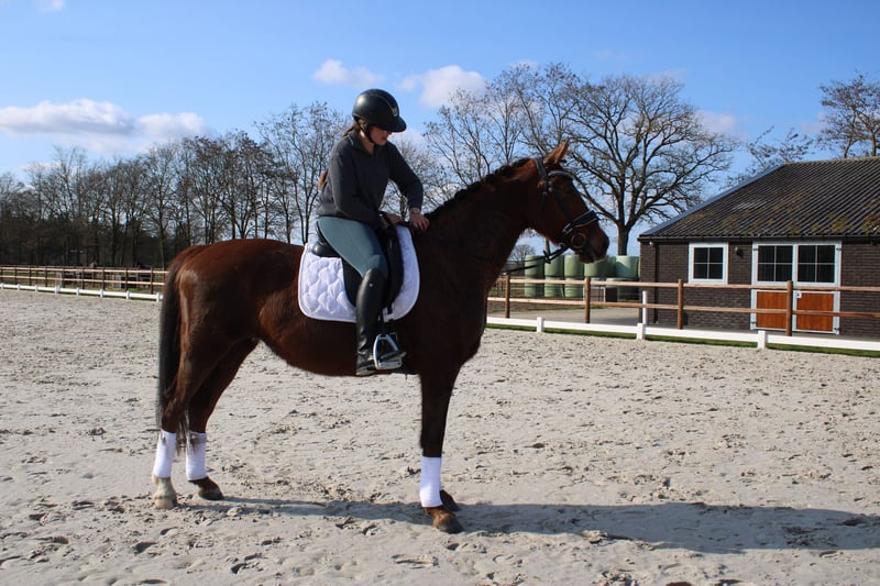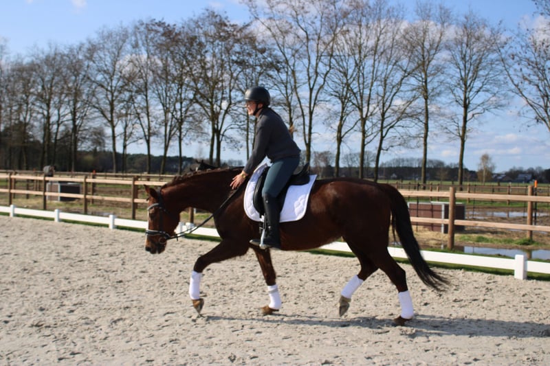 Meet Moby, also known as Molly! Molly is this year 9 years old and descends from Glock’s Toto Jr. x Kennedy, making her particularly interesting for breeding. She has already given us a beautiful foal, became pregnant immediately, and is an excellent mother. Besides her qualities as a broodmare, Molly is also suitable as a riding horse, although she is still a bit green in that regard. She is well-behaved on trail rides, has controlled all three gaits, and can jump up to approximately 80 cm. Due to lack of time, she has not been ridden in the past six months but is now being brought back into work. Molly is available for sale because we wish to focus on other mares within our breeding program. She measures 1.63 meters (16.1 hh). For more information or if interested, please feel free to contact us!