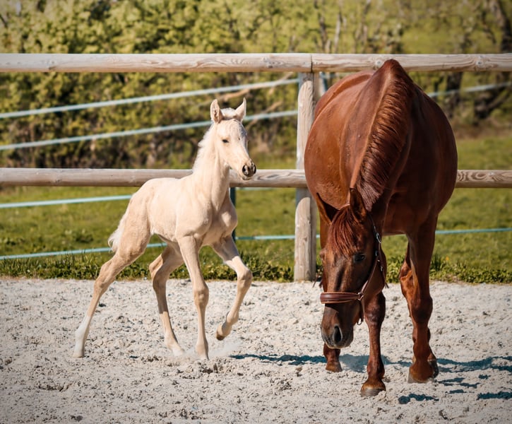 🌟 World is Mine Of Vencedor 🌟 Palomino KWPN stallion By Qaside MD out of Impossible (Imposantos x Bordeaux) --- The perfect blend of charisma, genetics, and movement. World is Mine Of Vencedor is an exceptional foal, embodying everything the modern dressage market seeks today: a striking natural presence, a rare coat color, and a build designed for performance. From the first glance, he commands attention with his ultra-chic appearance, elegance, and attitude. In motion, he immediately confirms: three high-quality gaits with plenty of swing, elasticity, and excellent natural balance. His canter is uphill and cadenced, his expressive trot with bounce, and his spacious, light-footed walk. A harmonious, modern model with a true back mechanics. --- 🔬 Pedigree: An intelligent and contemporary cross, combining strength, locomotion, and aptitude for collection, with proven lines for producing Grand Prix horses. --- 🎯 Potential: A serious prospect for high-level sport, but also a strategic investment thanks to his palomino coat and very commercial conformation. --- 💎 For whom? Ambitious rider, breeding farm looking to enhance their stock, or investor seeking a horse with high added value, capable of standing out both in the arena and on the market. --- “This is not just a color. It’s primarily a quality horse… with the color to match.”