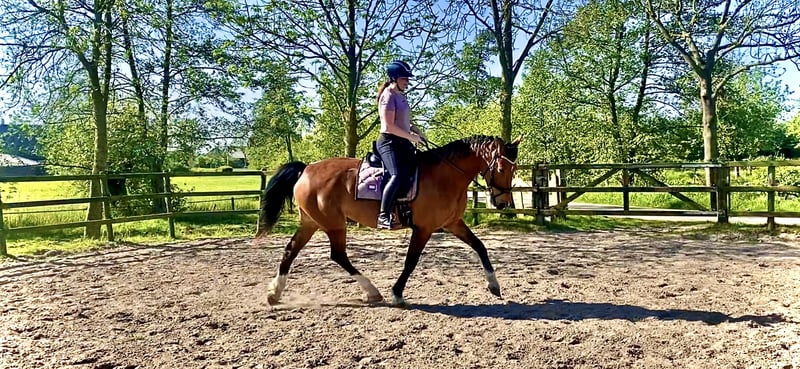 Voor Kasandra (Sander x Ahoy) ben ik rustig aan opzoek naar een nieuw huisje. Goede plek is belangrijker dan de prijs. - 10 jaar oud, 1.70m hoog - Zeer goede bloedlijnen: goedgekeurde en bekende hengst Danser is haar volle broer. Danser staat bekend om aanleg voor dressuur. Daarnaast is haar volle zus Inova een elite merrie die zich heeft bewezen in de mensport. Hierom ook interessant voor de fokkerij - Dressuurmatig (klassieke richting) gereden op ongeveer L niveau. Heeft potentie tot veel meer bij een ruiter die meer dressuurervaring heeft! - Lief en braaf paard. Veel tijd gestoken in opvoeding. Veel grondwerk mee gedaan en is op neckrope te rijden in de bak. Ook op buitenrit braaf en verkeersmak. - Heeft eens een veulen gehad en liet zien erg goede moeder te zijn - Hele geschiedenis is bekend - Mogelijkheid tot overnemen van vrijwel alle toebehoren (zadel, hoofdstel, dekens, dekjes etc) Ondanks de goede opvoeding en lieve karakter, kan ze wel snel spanning opbouwen in bepaalde situaties en heeft dan hulp nodig om de spanning af te vloeien. Kan schrikkerig zijn. Daarom niet geschikt voor onzekere of onervaren ruiter, tenzij er een ervaren iemand bij is die kan helpen. Ze kan dus heel rustig en mak zijn, maar ook wat pittiger! Ook heeft ze moeite met op de trailer staan. Dit ivm balans en spanning. Op een vrachtwagentje (zeker met ander paard ernaast) gaat het wel goed. Misschien trailer met ander paard nu ook wel, dat hebben we niet meer geprobeerd sinds het vrachtwagentje goed gaat.