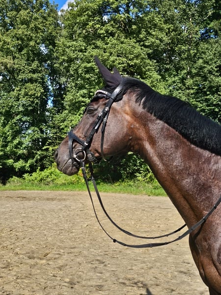 Grace is a beautiful ten-year-old black mare (KWPN, 1.72 m) who captures everyone's attention with her charm and expression. She is versatile and offers great potential both in the dressage arena and in the jumping course. Grace is an eager mare with plenty of energy, who can optimally showcase her qualities under an ambitious and consistent rider. She loves to move, wants to be challenged, and shows motivation when given the opportunity. For the past three years, Grace has been cared for by a young rider. Due to her temperament and high sensitivity, a dynamic unfortunately developed that became a challenge for both: the rider became increasingly unsure, and Grace took more initiative – leading to a downward spiral that could not be broken. For this reason, Grace is now for sale and is currently being corrected under experienced hands. It is important to note: Grace is not a horse for beginners. She requires clear, fair, and experienced guidance. In situations where she is over- or under-challenged, she tends to make her own decisions and can disengage from work. However, under consistent and experienced leadership, she does not exhibit this behavior and presents herself as a powerful partner. For riders who enjoy further educating a talented horse and take pleasure in a partnership built on consistent work, Grace is a wonderful companion with a lot of heart and presence. The video shows the current state of her gymnastic work, as well as a jumping video with her former young rider. Grace is well-behaved in the field and is not environmentally sensitive. In the herd, she finds her place in the middle and shows herself to be social and friendly. The price is currently negotiable, as Grace is still undergoing correction. This is not a forced sale, and we want to find the right person for her.