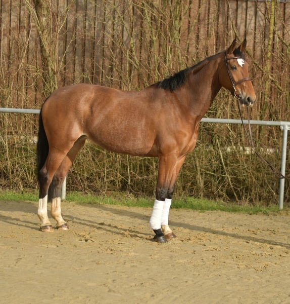 Discover your perfect partner in show jumping: our charming KWPN mare **Karla Leva**! Born in 2015, this exceptional mare stands approximately 16.1 hh and impresses not only with her striking markings but also with her fantastic temperament. She is compact and agile, making her ideal for ambitious riders seeking a reliable partner. ### Characteristics: - **Unique markings:** Her distinctive appearance makes her a real eye-catcher in the stable and on the course. - **Excellent temperament:** Karla Leva has a positive attitude that makes training a pleasure. - **Easy to ride:** She responds superbly to aids and is suitable for both experienced riders and those transitioning from other disciplines. - **Competition experience:** Whether in unfamiliar environments or at shows, she handles every challenge with confidence and calmness. ### Special Offer: Secure a **5% discount** on the purchase price with immediate pickup! ### Test riding: Try Karla Leva for a week with us! This trial week can be accompanied by an experienced trainer, and you have the opportunity to combine riding with lessons. Please note that a trial fee applies, which is not deducted from the purchase price. ### Trial riding: See her talents firsthand! You are welcome to visit and meet her. The cost for a pre-ride or trial ride is **30 € per person**. Come by and experience the horse that will turn your riding dreams into reality!