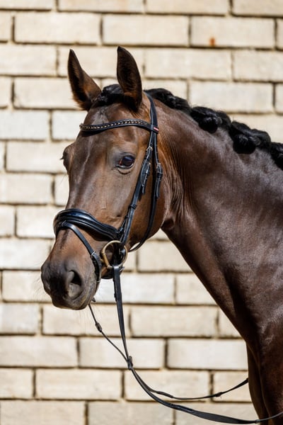 10-year-old KWPN mare. Level L dressage, has been idle due to a foal. Currently being ridden by a 14-year-old rider. No stable vices, good with the farrier, enjoys a ride outside. Needs to be picked up again, is also super pretty and has an incredibly sweet character.