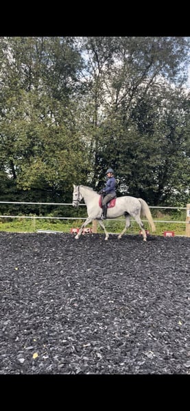 This mare is very sensitive and needs to be ridden with correct, calm aids. She reacts delicately to her rider and values clear, confident communication. As a result, she occasionally tests her boundaries and requires an experienced, self-assured rider. In the field, she is absolutely reliable—both alone and in a group. She behaves well in walk when ridden out with children. Due to her spirited nature and sensitivity, she is not suitable for beginners. She needs daily activity and enjoys variety: groundwork, circus lessons, lunging, rides, or dressage work—all of which she finds equally enjoyable. She works with motivation, learns very quickly, and always displays a joyful attitude towards her work. I no longer jumped her, but the previous owner has videos showing her jumping up to A level. Her excellent pedigree further highlights her potential. A wonderful horse for ambitious riders who appreciate versatile training and a sensitive partner. I would prefer her to have daily turnout or access to an open stable.