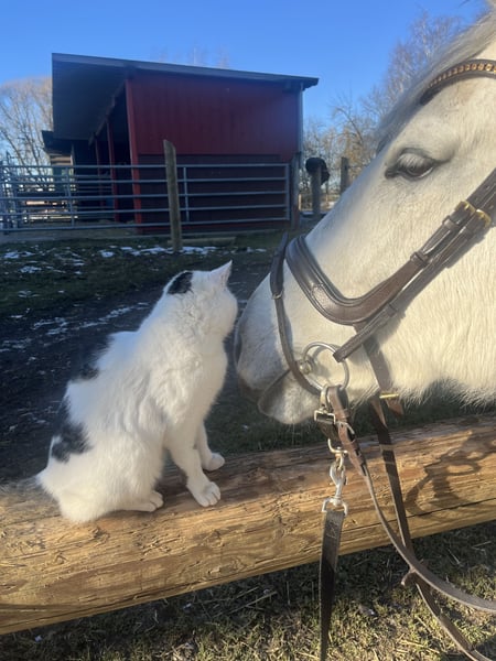 Ta klacz jest bardzo delikatna i wymaga jazdy z prawidłowymi, spokojnymi pomocami. Reaguje wrażliwie na swojego jeźdźca i ceni sobie jasną, pewną komunikację. Dlatego chętnie sprawdza też swoje granice i potrzebuje doświadczonego, opanowanego jeźdźca. W terenie jest absolutnie niezawodna – zarówno samodzielnie, jak i w grupie. Z dziećmi chętnie chodzi spokojnym krokiem na wycieczki. Ze względu na jej charakter i wrażliwość nie jest jednak odpowiednia dla początkujących jeźdźców. Chętnie pracuje codziennie i lubi różnorodność: prace na ziemi, ćwiczenia z circlingiem, lonżę, przejażdżki czy jazdę dressage – wszystko sprawia jej radość. Motywuje się do pracy, szybko się uczy i zawsze wykazuje chęć do nauki. U mnie nie skakała już przez przeszkody, ale od poprzedniego właściciela są dostępne filmy, na których skacze do klasy A. Podkreśla ją również jej świetne pochodzenie, które dodatkowo podkreśla jej potencjał. To wspaniały koń dla ambitnych jeźdźców, którzy czerpią radość z różnorodnej pracy i cenią sobie wrażliwego partnera. Życzę jej codziennego dostępu do pastwiska lub wybiegu otwartego.