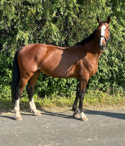 For sale is a 2014-born KWPN mare named "Jolina," standing at approximately 1.72 m tall. This young lady impresses not only with her loving nature and pleasant demeanor but also with her great appearance. She is very willing to work, moves well in all three gaits, and always behaves nicely. She also shows good technique over jumps and is already experienced in the course. With bloodlines from Harley VDL x Indorado, all paths are open to her, whether as a lovely leisure partner, a future sport horse, or a broodmare. Of course, she is familiar with the farrier (currently barefoot), the veterinarian, as well as loading and traveling. Additionally, her teeth were recently done.