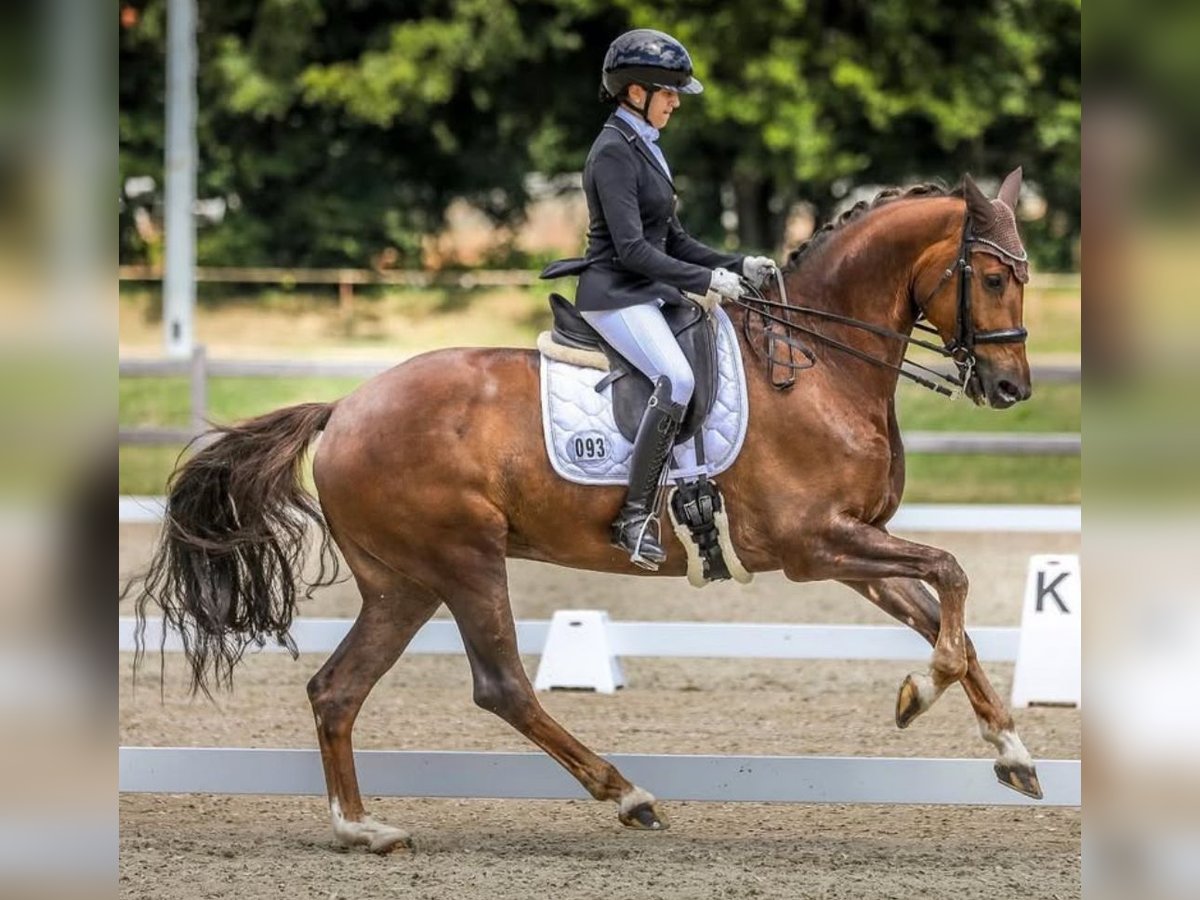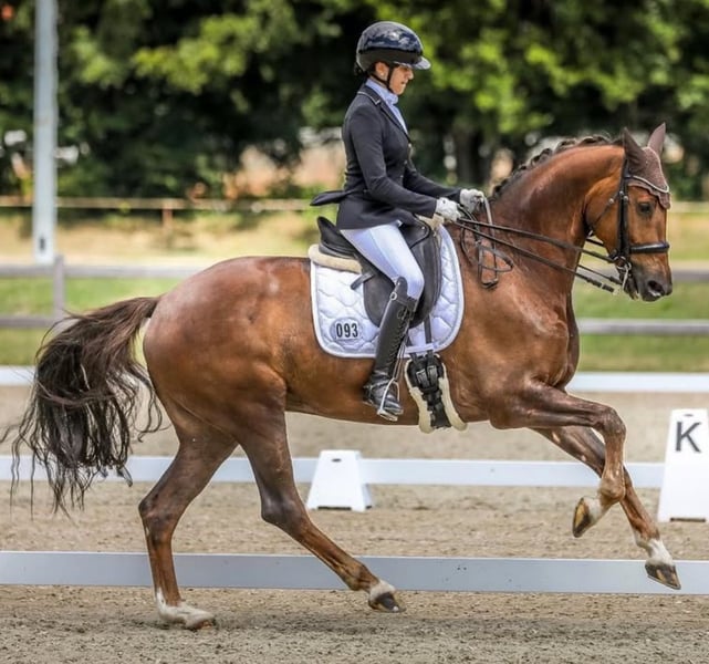 Schoolmaster mare for sale, suitable for medium and advanced dressage. Performs reliably and is perfect for ambitious riders. Competition experience available. Additionally, she comes from a wonderful and spirited pedigree. To be placed in caring hands where she can further develop her potential.
