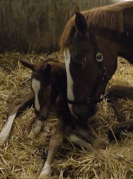 Go Figure es una yegua de cría de 15 años que, tras dar a luz a su potra el año pasado, no ha sido cubierta este año, por lo que en 2026 podrá buscarse un semental a elección. Es hija de Quintender y actualmente compite en Suecia. Su última hija, de HH Conrad (potra negra), continuará con la línea de cría. (Epleaser van ’t Heike x Voltaire x Capitol)