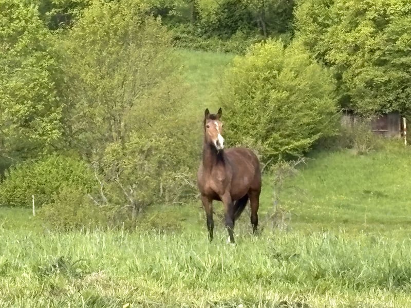 Die Stute war bei uns in der Zucht und wird als Beistellpferd abgegeben. Sie ist Herdenhaltung gewöhnt und absolut verträglich. Sie ist brav im Umgang..