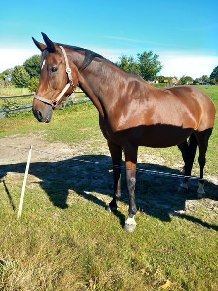 We are offering a beautiful 14-year-old mare for sale. She is lively, in excellent health, and currently happy in an open stable. Unfortunately, we do not have a suitable rider for this wonderful mare. She is looking for a loving and sensitive new home. She is absolutely herd-compatible, but not suitable for beginners. She is very sensitive when riding and responds delicately to leg aids. The mare was last ridden in the summer. Price is negotiable, place takes precedence over price.