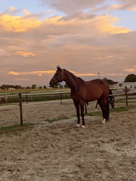 Z bólem serca z przykrością oferuję moją ukochaną klacz Fergie na sprzedaż z powodu osobistych okoliczności (rozwód). Szukam dla niej ciepłego, kochającego domu, w którym otrzyma tyle uwagi, na ile zasługuje. 🐴 O Fergie: Klacz KWPN Rodowód: United X Mistral Wysokość w kłębie: około 165 cm Wiek: prawie 16 lat Zdrowa i dobrze utrzymana Fergie to niezwykle spokojna, szczera klacz, która nigdy nie jest złośliwa pod siodłem. Jeździmy na niej głównie w rekreacji, trenując głównie ujeżdżenie, skupiając się na poprawie kontaktu, równowagi i zaufania. Jest również odpowiednia do jazdy w terenie; u poprzedniej właścicielki jeździła westernem i często chodziła na wycieczki do lasu. ✨ Charakter: Fergie to prawdziwa klacz z własnym charakterem. Lubi uwagę, głaskanie i czesanie – ale na jej warunkach. Jednak zawsze chętna na smakołyk lub marchewkę, dla nich zrobi wszystko! W kontaktach jest pewna siebie: nigdy nie kopie ani nie gryzie. W stresujących lub nowych sytuacjach może być nieco niepewna i zrobić mały skok w bok. Dlatego nie jest odpowiednia dla początkujących ani młodych dzieci, ale raczej dla jeźdźca z pewnym doświadczeniem. 🩺 Zdrowie i opieka: Brak problemów z boksowaniem Stawiana na podkowy Zawsze regularnie szczepiona i odrobaczana Corocznie kontrolowana przez weterynarza stomatologa 🏡 Czego oczekuję od nowego właściciela? Kochającego, konsekwentnego jeźdźca, który ją rozumie i chce budować jej zaufanie. Dla mnie ważniejsza jest dobra kompatybilność niż szybkość decyzji. 📩 Zainteresowanych lub po więcej informacji zapraszam do kontaktu! ❗ Handlarze proszeni o nieodpowiadanie – Fergie trafi tylko do odpowiedniego domu.