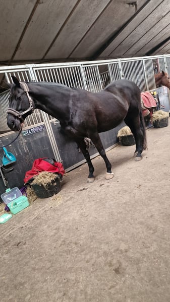 Belle jument Kwpn à vendre Doris Day, comme nous l'appelons, est une belle jument têtue. Elle se comporte bien et sait exactement ce qu'elle doit faire. Je l'ai présentée à une inspection pour la deuxième fois et elle a bien réussi. Elle fonctionne presque en pilote automatique car elle est formée au niveau M2 en dressage. Elle est extrêmement gentille et adore être brossée et choyée. En résumé, une très gentille jument Kwpn à vendre. Elle a 17 ans mais elle veut vraiment travailler et être montée pour vous. Je demande 4500 € pour elle et, éventuellement, pour 1000 € supplémentaires, tous les équipements nécessaires adaptés à elle. Ces équipements ne m'appartiennent pas mais appartiennent à une cavalière, c'est pourquoi il y a ces 1000 €. La selle est incluse dans ces 1000 € et elle a été mesurée pour elle, elle nous a déjà coûté 3000 €. En résumé, une belle et superbe jument qui souhaite travailler pour vous.