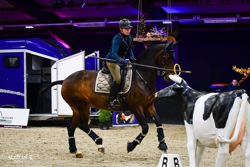 Aida is een lief paard zowel met rijden als op de grond. Ik kan met haar alleen op pad naar wedstrijd en les. Wij hebben succesvol Inter I gestart. Aida houd van afwisseling, longeren, grondwerk, working equitation (lvl 3) en basis loswerken. Ze kan ook bit en zadel loos rijden. Aida kan ijverig worden als ze lekker aan het werk is, maar zal nooit een stap verkeerd zetten en als je samen een combinatie vormt zal ze alles voor je doen. Aida kan ook buiten rijden, dit vindt ze heel leuk en hebben we de laatste jaren te weinig gedaan daarom gaat ze het liefst met een rustig vriendje naar buiten. Verder hebben we samen op horse event gereden en shows mee gedaan. Kort om genoeg ervaring. Het is belangrijk voor haar om elke dag naar buiten te gaan samen met andere soort genoten (ze kan samen staan met ander paarden), maar gaat ook graag weer naar haar schone, warme stal. Door haar leeftijd en haar ervaring is ze geschikt voor een ruiter die netjes de basis beheerst en die eventueel aan de basissport wilt mee doen. Ze gaat enkel en alleen naar een zeer goed huisje! Ze uiteraart netjes up to date met smit en vaccinaties. Wil je meer van haar zien kijk gerust op mijn instagram pagina @siena_stienen